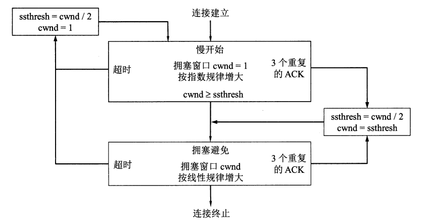 TCP 通过四个算法来进行拥塞控制: 慢开始, 拥塞避免, 快重传, 快恢复.