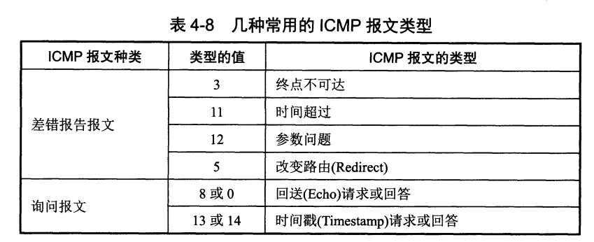 分组网间探测 PING 就是用 ICMP 完成的, 这是一个应用层直接使用网络层的例子, 运行 PING 会连续发送 4 个 ICMP 回送 (Echo) 请求报文到目标主机, 若服务器正常工作且不拒绝探测, 就会发送 ICMP 回送回答报文, 根据往返报文上的时间戳即可进行统计.