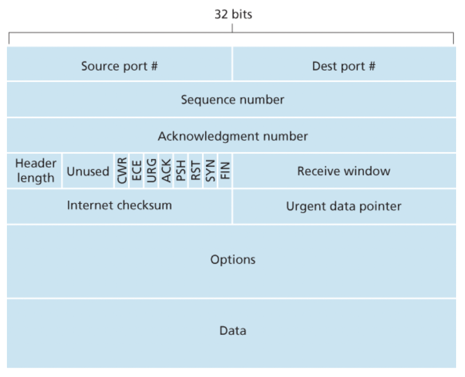 序号: 用于对字节流进行编号, 例如, 序号 301 表示第一个字节的编号为 301, 若携带的数据长度为 100 字节, 那么下一个报文段的序号应为 401