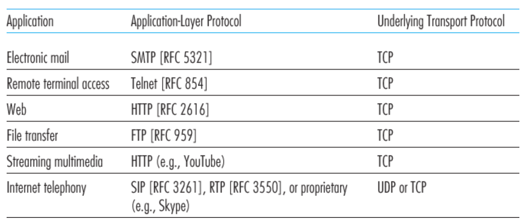 常见的应用与对应协议: